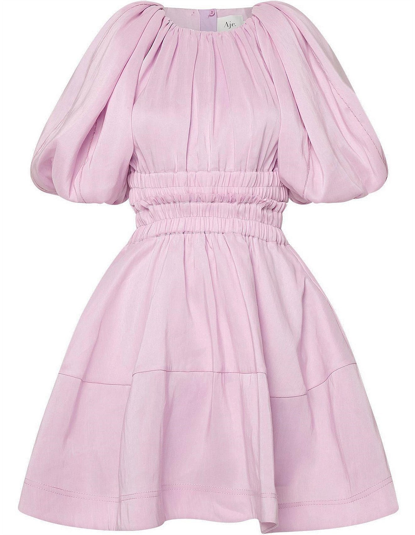 The delicate pin tucking on the waistline allows the shape to be easily worn, whilst the puff sleeves are synonymous with the signature shape of Aje occasion wear.