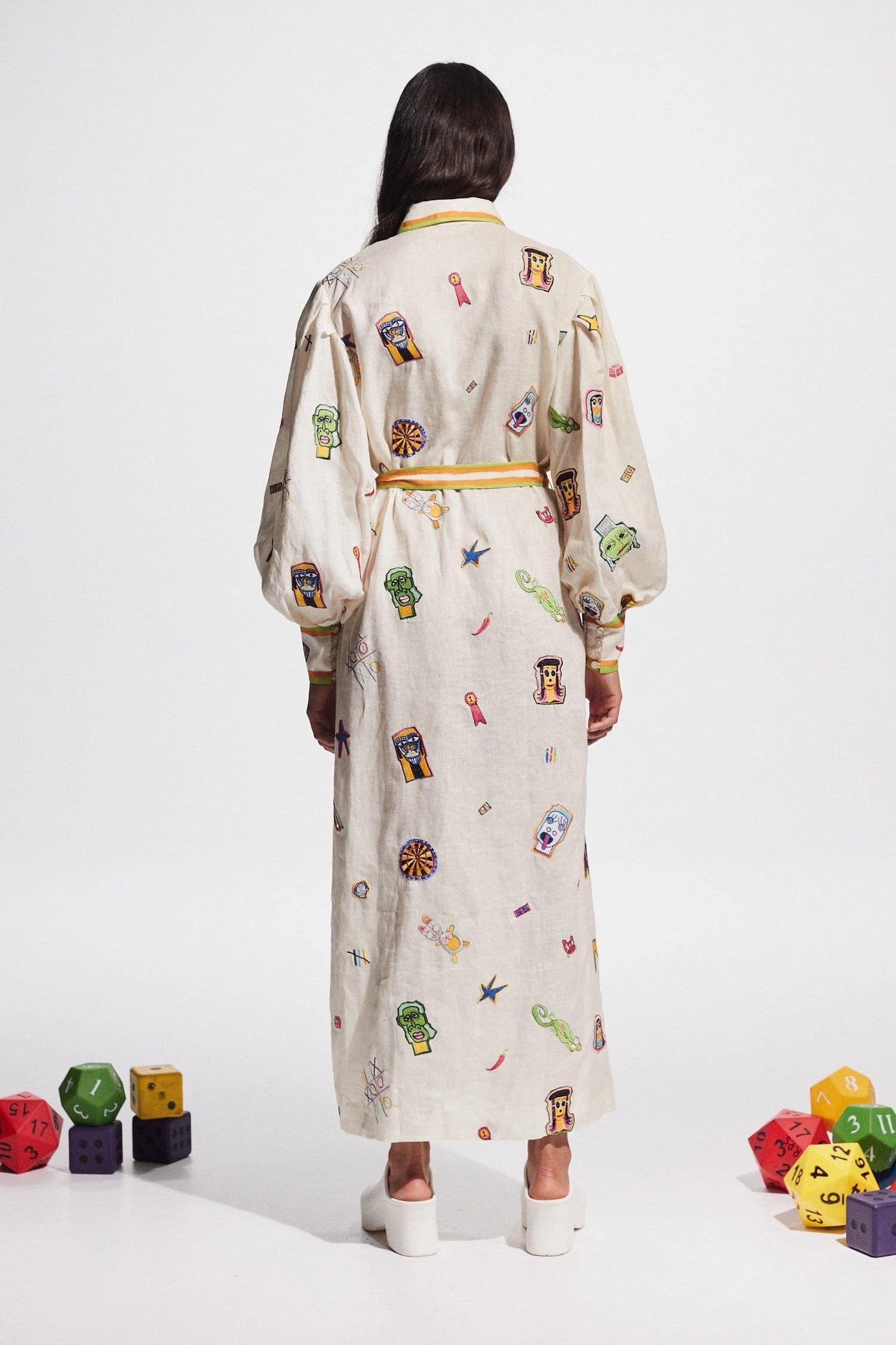 A stunning fusion of fashion and art, the Alemais Checkered Embroidered Shirt Dress features exclusive artwork created in collaboration with renowned multidisciplinary artist Michael Swaney. This relaxed shirtdress combines bold design, playful embroidery, and effortless elegance.
