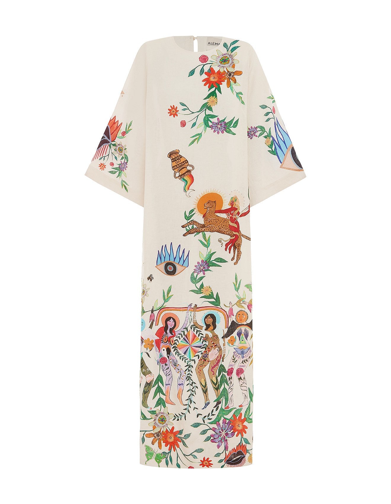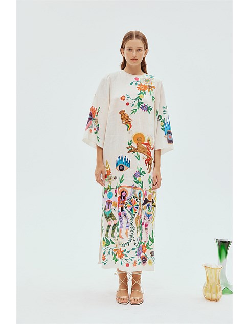 Artwork in collaboration with artist Meagan Boyd. A relaxed, shift-style sihouette with a round neck. The Australian label Alemais provides a well-edited collection of pieces for the adventurous spirit. The Meagan Midi Dress will elevate your boho-chic look. Perfect for all occasions.