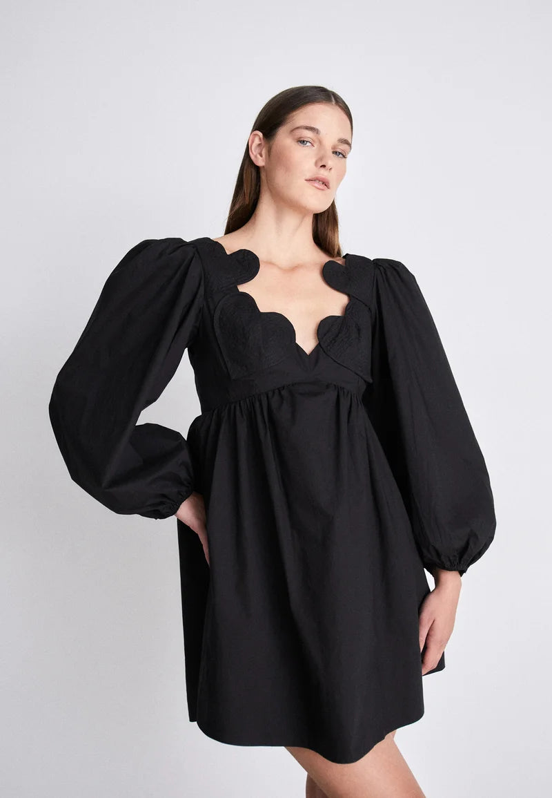 A basic-but-bold way to get through any season (or situation!). The Appliquéd gathered cotton-poplin mini dress has an elevated silhouette and a cute heart-shaped detail.