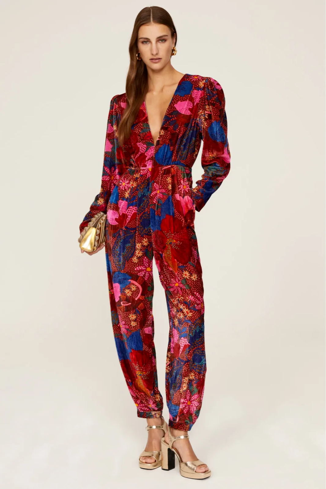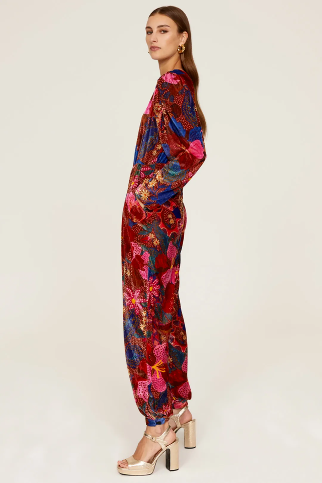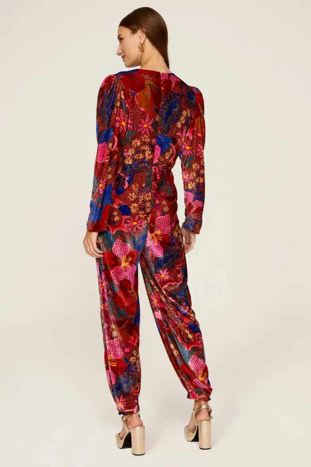 Farm Rio's jumpsuit is printed with vibrant florals inspired by Brazil's tropical landscape. Cut from plush velvet, it has a plunging neckline and relaxed fit tempered by a gathered waistband. Style yours with pumps and a clutch.