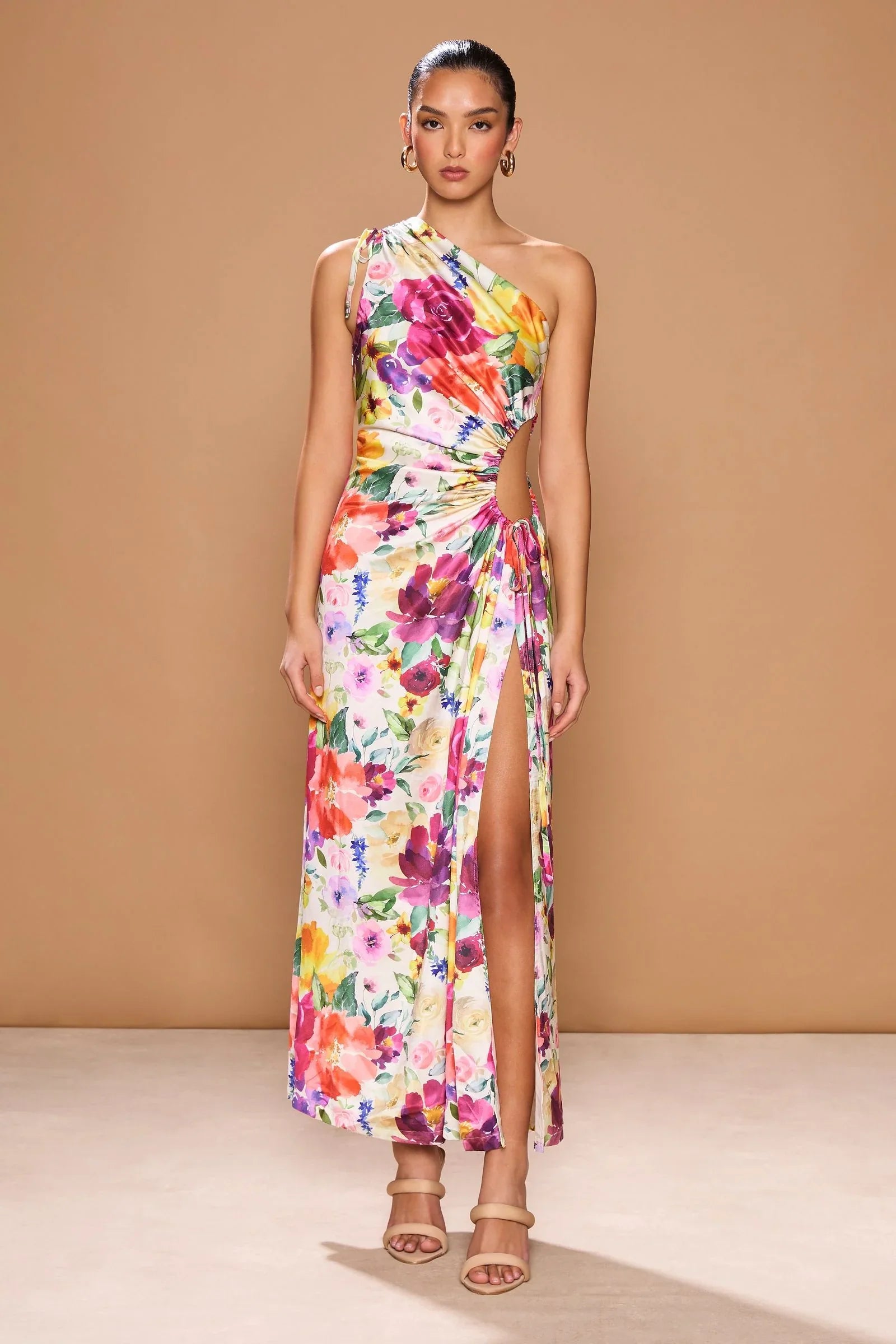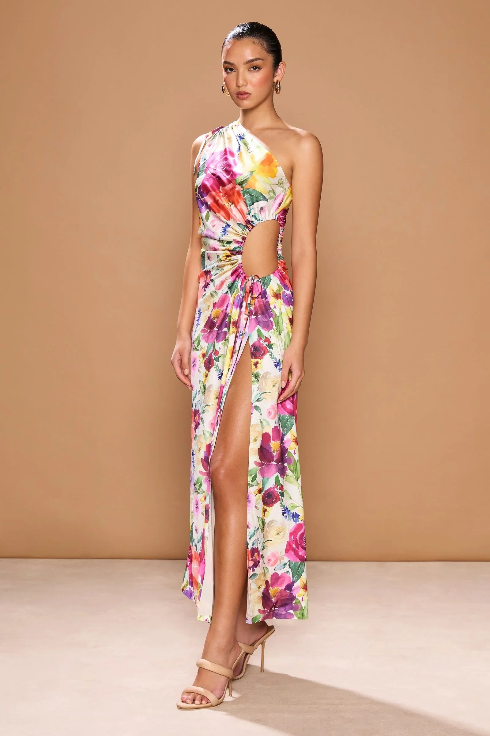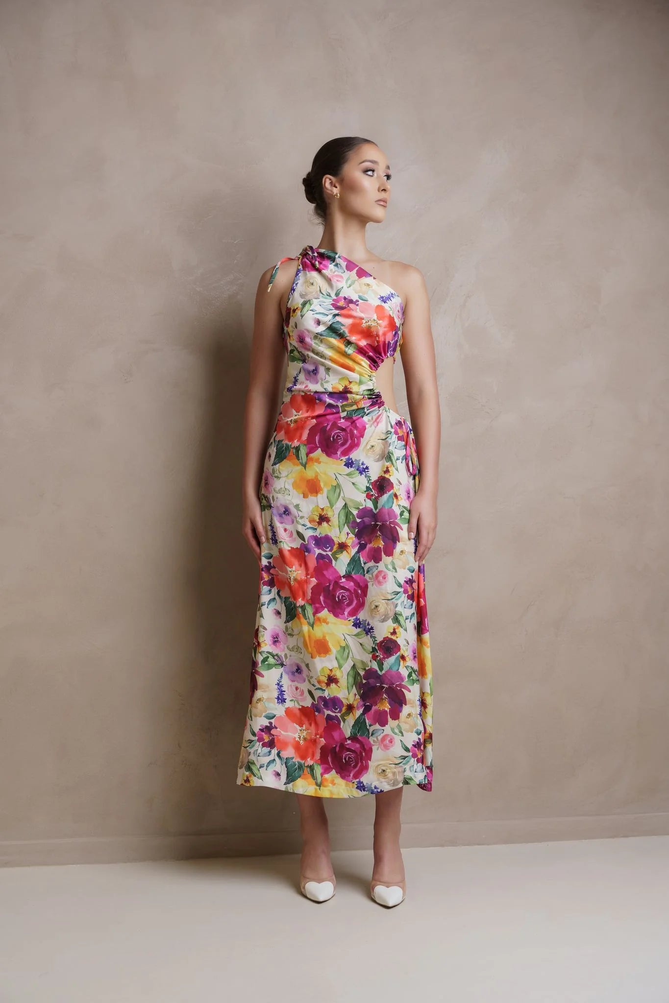 The Nour is a full-length maxi dress designed to take you effortlessly from day to night, exuding classic elegance with a hint of sultry sophistication. With a sensual, one-shoulder silhouette, this dress features an adjustable tie at the hip/waist, sculptural ruching, and a high split that flatters every curve.
